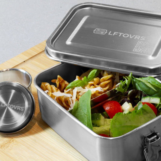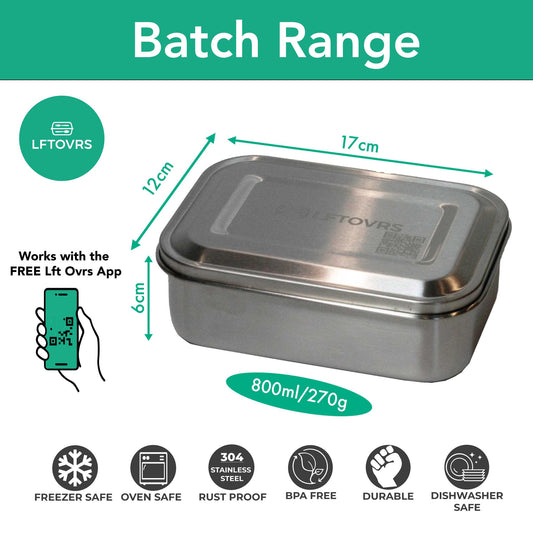 These lunchboxes are available in a convenient set of 5 containers. This is the best option for batch cookers or anyone who wants to prepare a week's worth of lunches and keep track of them using the Lft Ovrs App.