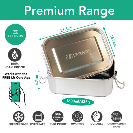 1600ml Premium Stainless Steel Lunch box - Leakproof with Mobile App