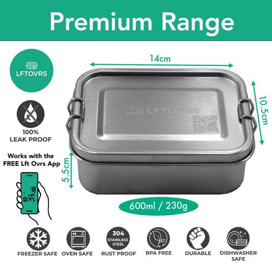 400ml Premium Stainless Steel Lunchbox - Leakproof with Mobile App