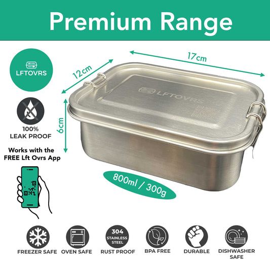800ml Premium Stainless Steel Lunch box - Leakproof with Mobile App